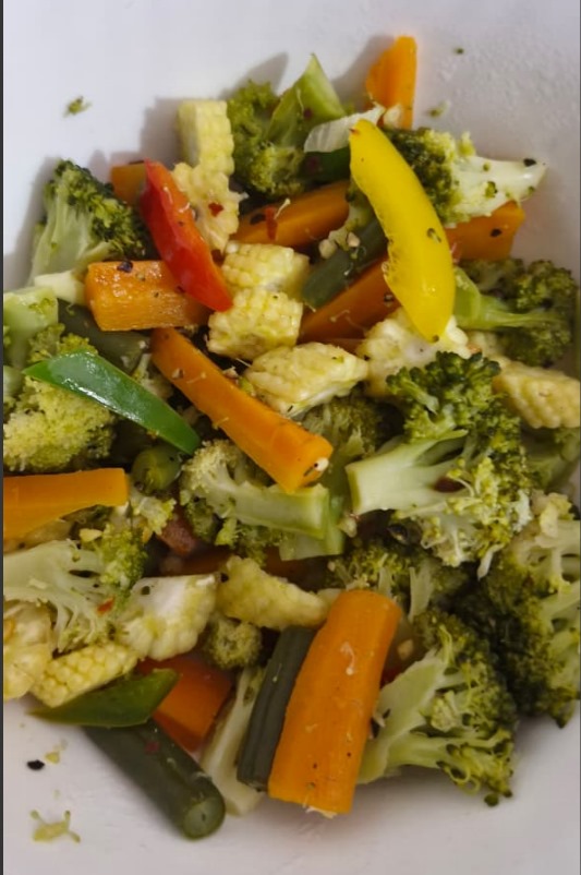 Broccoli, Baby corn, Beans, Carrot, Capsicum, Seasoning, Dressing